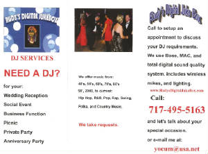 to Current Top 40 Hits Country, Disco, Funk, Pop, Swing We take requests at all functions